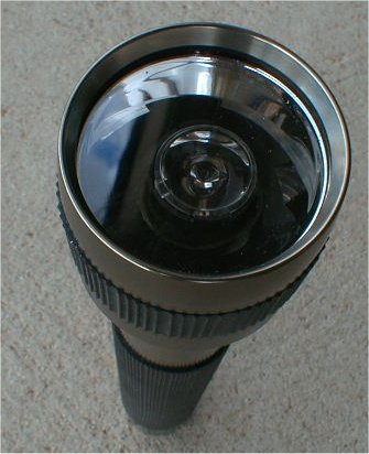 Well, here it is! This is a BRINKMANN (TM) aluminum flashlight, which I personally modified, to use the Luxeon Star LED, the brightest LED in the world!