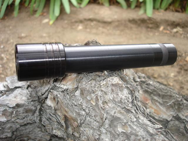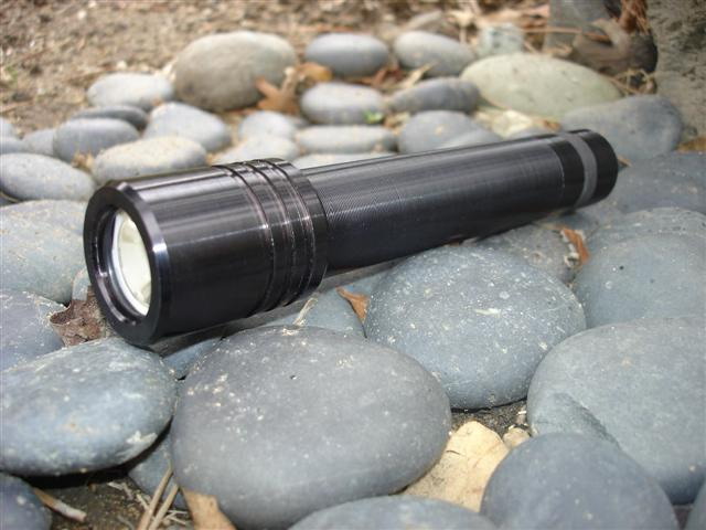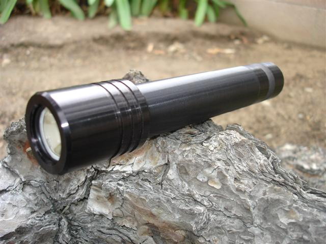 The above is a beam shot, comparing the Lucidus-XR2 to the XM-3.  The XM-3 was a very popular flashlight  Elektro Lumens sold for some time (now discontinued), in use by quite a number of security companies. Although the brightness of the XM-3 is adequate for such use, the Lucidus-XR2 is considerably brighter. Also, the LED being used, the Cree XR-E, is much more efficient, using less power to obtain much higher brightness than the XM-3, which used a Luxeon 3W LED.