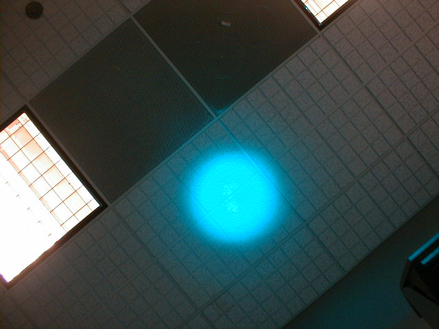 Here is a beam shot in broad daylight, with the flourescent lights on brightly. There is a lot of light coming in from my window. This is an intense beam of light!