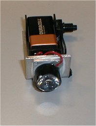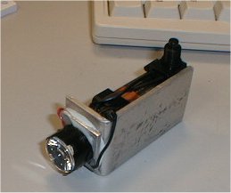 This is a flashlight, a pocket flashlight, the brightest pocket light in the world (I think), at 120 Lumens. It uses a cyan 5 watt Luxeon Star emitter, rated at 120 lumens, a 9 volt battery. The following poem says it all:It sleeps on an aluminum sled, with the 5 watt emitter at the head, The 9 volt battery is in a plastic bed, To the onlookers eyes it is a dread!