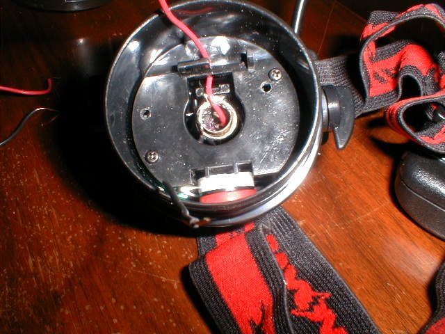 Here is another photo of the headlamp, with the positive and negative wires visible. |