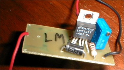 Here is the LM2595 step down circuit board. It measurs 1" X 2". It will go inside a small plastic project box. A on/off switch, and a variable dimmer knob will be installed. This headlamp will have variable brightness selection. |