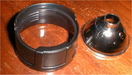 The cover and reflecotr. The reflector back opening will be enlarged to fit around the Luxeon Star LED, for a better finished look. |