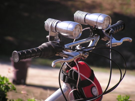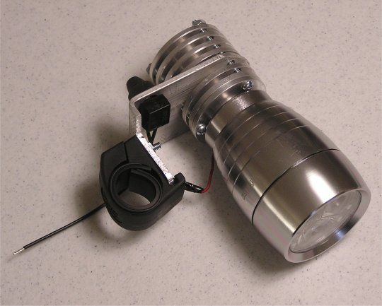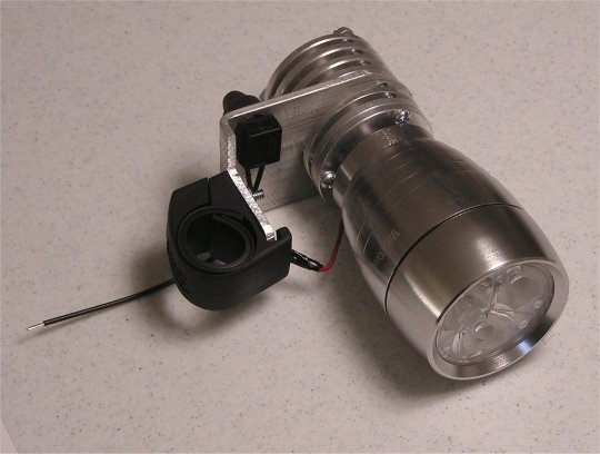 The Tri Star Bike Light is the latest hi-tech answer to the bicyclist's need for high power lighting. Using three amazingly bright 3 watt Luxeon Star LEDs, this light puts out a whopping 216 Lumens of light. Running at a full 13.5 watts, these LEDs easily put out as much light as a 20 watt halogen bulb.